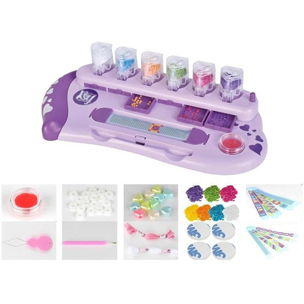 Descubre un mundo de creatividad con el kit para armar pulseras y collares diamantes. Diseñado para niñas, este conjunto fomenta la imaginación y la destreza manual mientras los pequeños crean joyas únicas. Incluye un estuche práctico para mantener todo organizado y a la mano, facilitando el aprendizaje a través del juego.