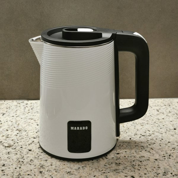 Calentá agua eficazmente con esta jarra eléctrica de acero inoxidable de 2,3 litros y 1500W de potencia, ideal para preparar infusiones rápidamente. Su tapa de seguridad, mango ergonómico y pico vertedor facilitan su uso y garantizan la protección en el hogar. Su diseño sobrio y moderno se integra fácilmente en cualquier cocina.